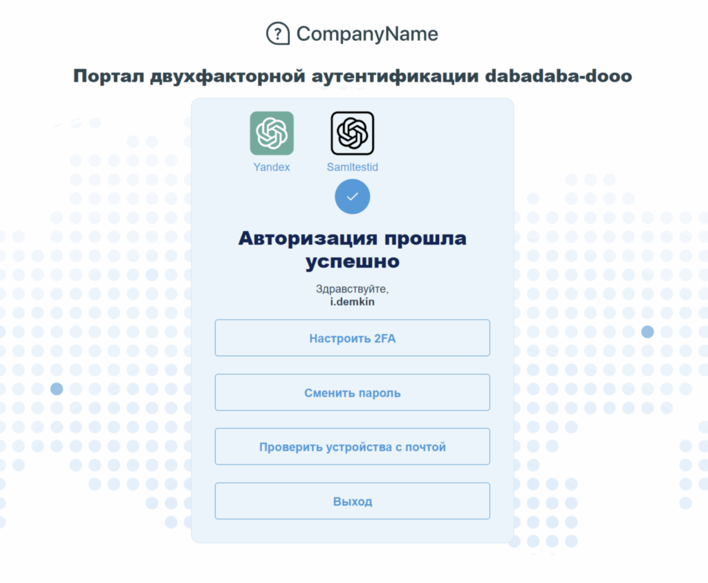 - После прохождения второго фактора пользователю виден список разрешённых приложений.