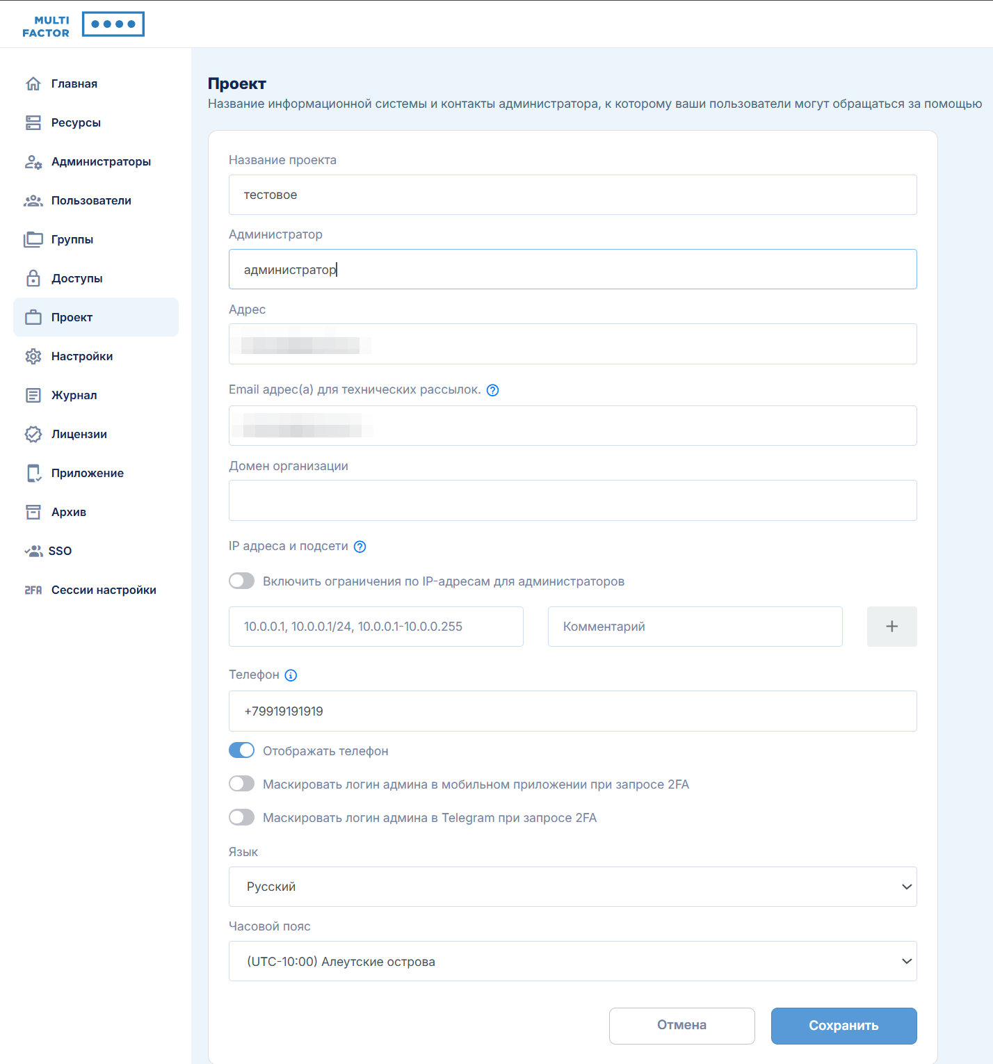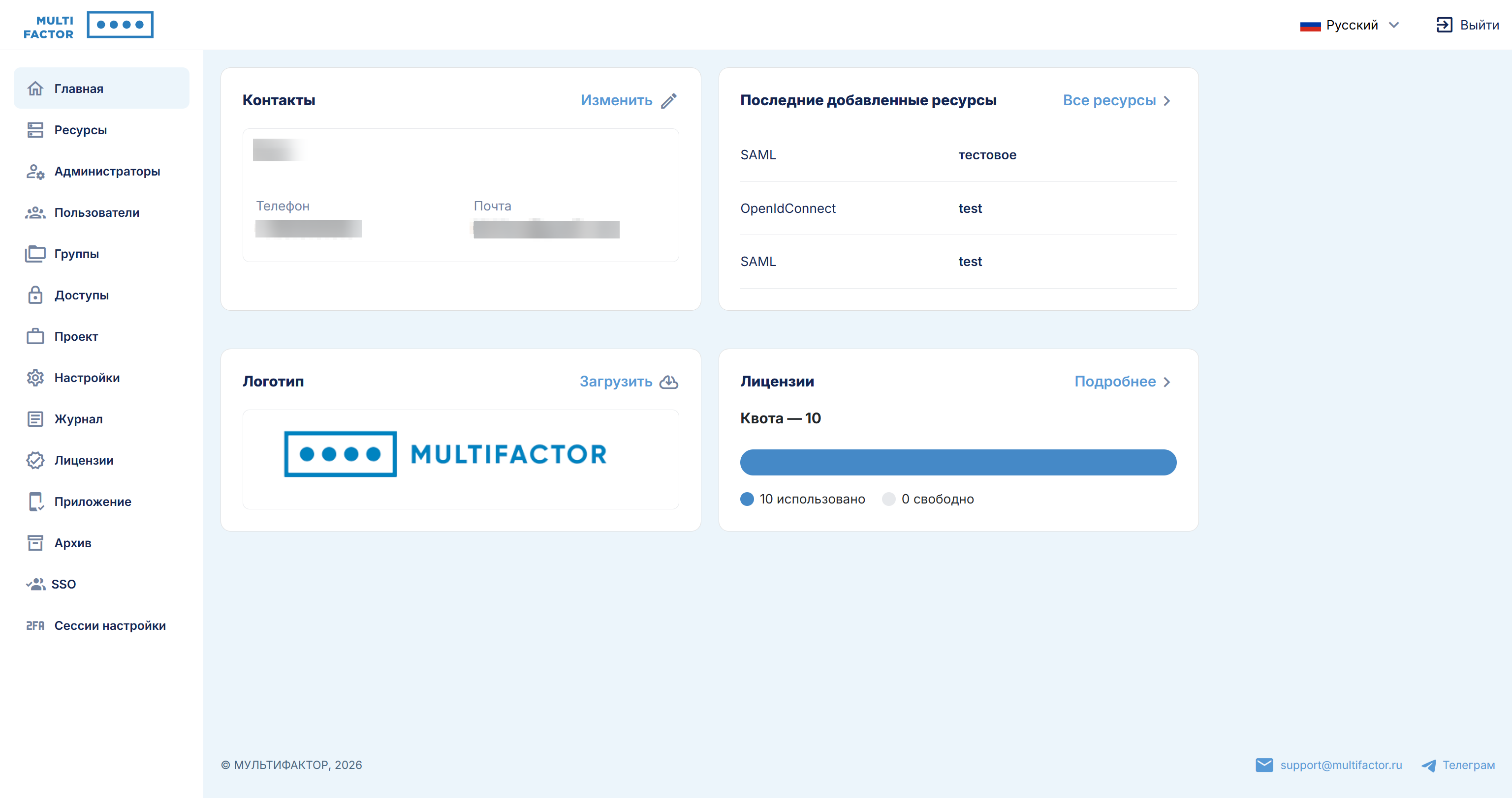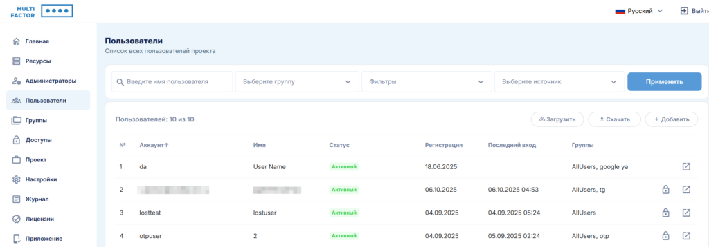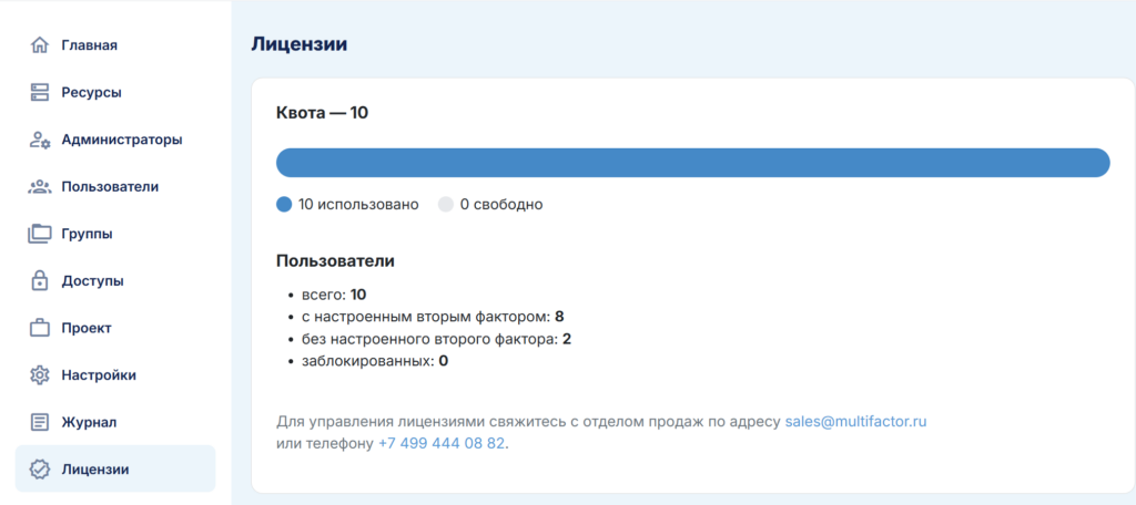 Личный кабинет администратора MULTIFACTOR необходим для того, чтобы управлять вашими ресурсами, пользователями и их группами.