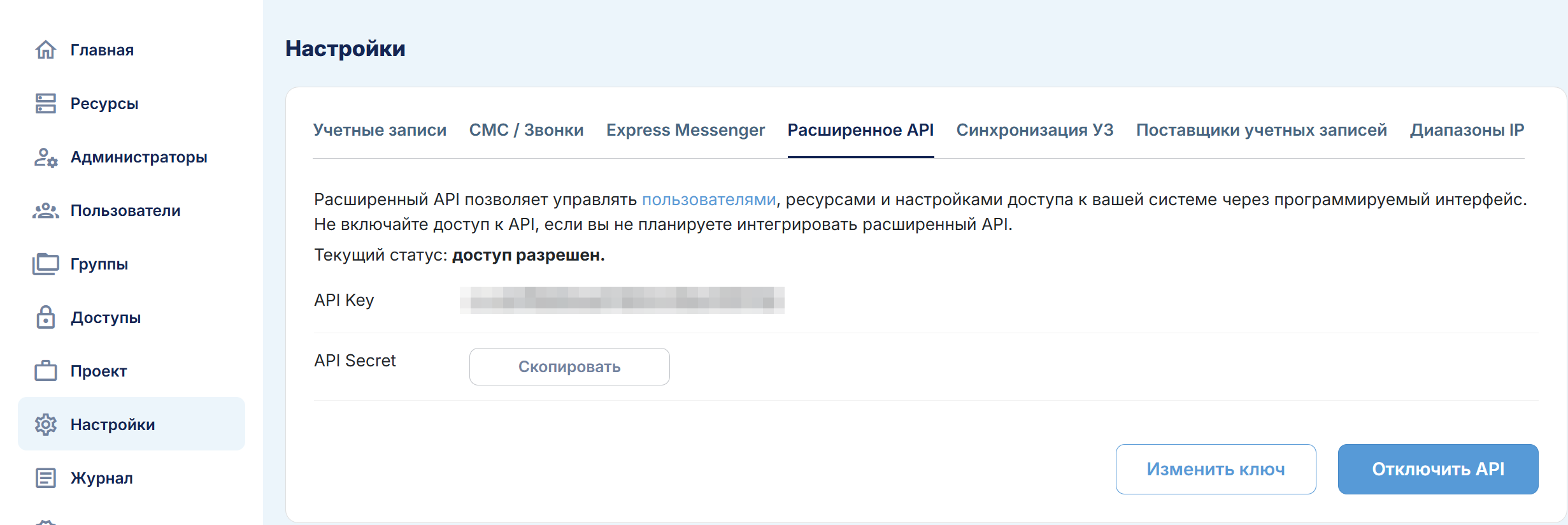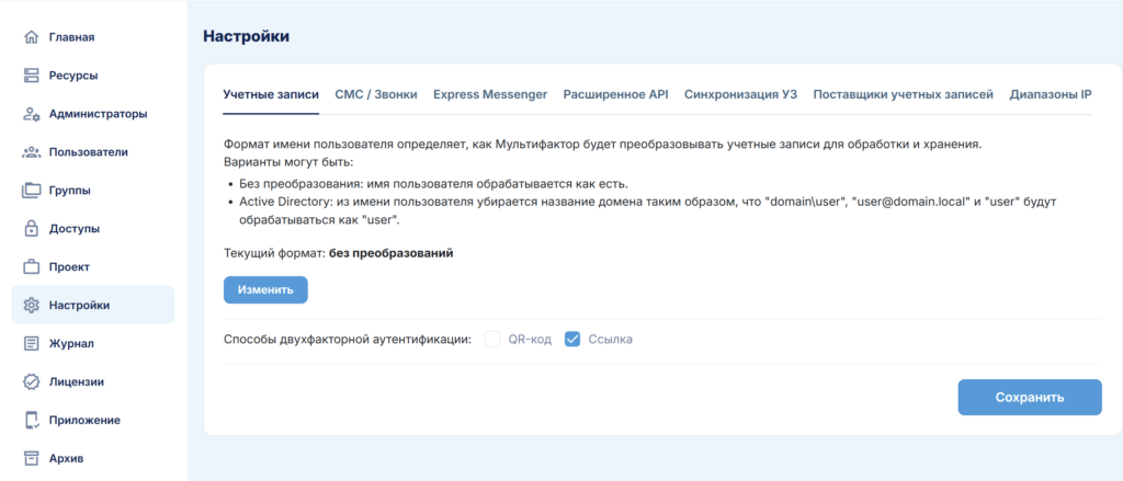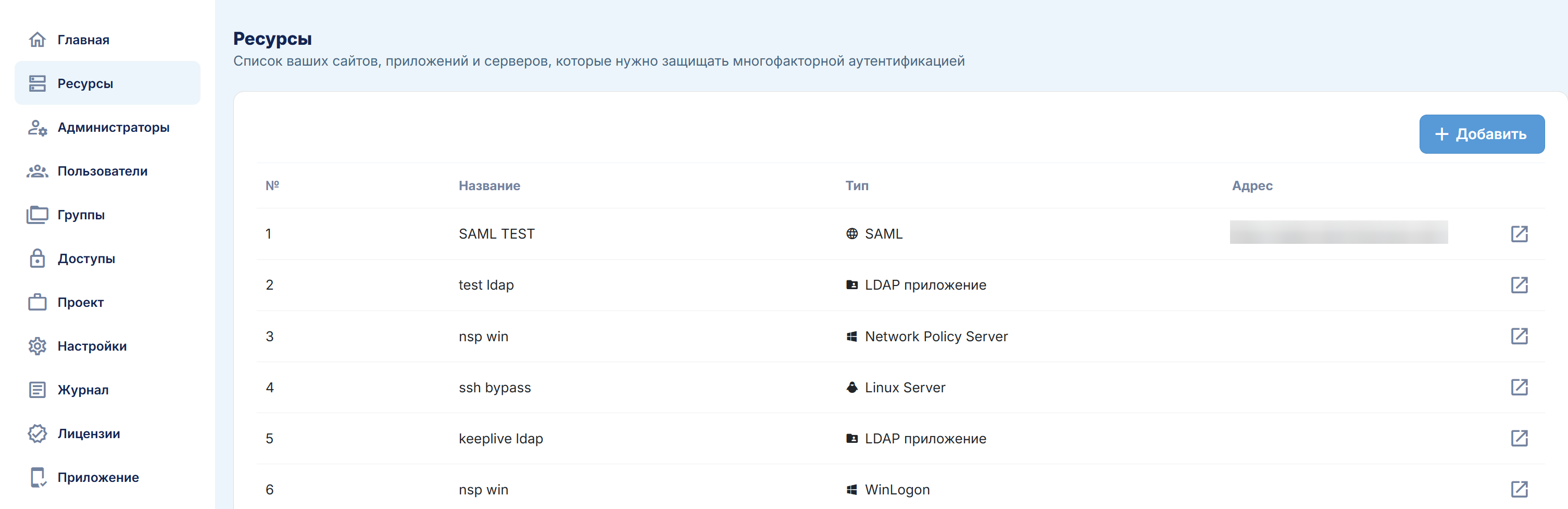 В этом разделе осуществляется управление вашими информационными ресурсами и системами с многофакторной аутентификацией.