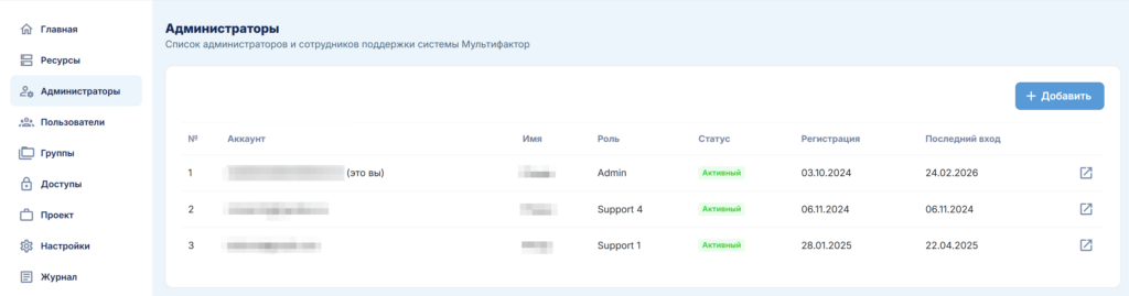 - Support 3: доступ к разделам «Пользователи» и «Запросы доступа», полное управление пользователями за исключением импорта и экспорта.