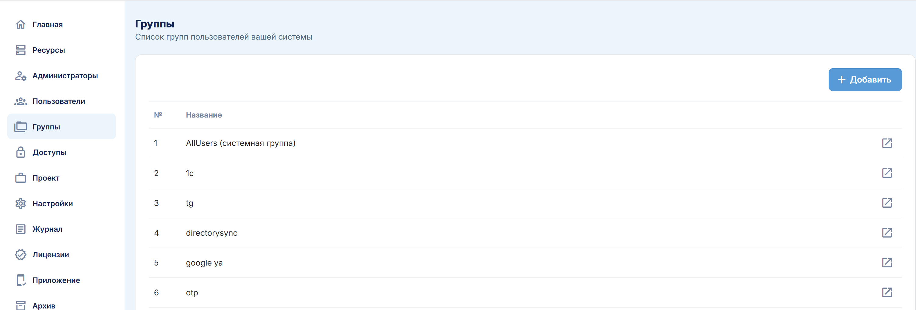 - группы и права доступа;