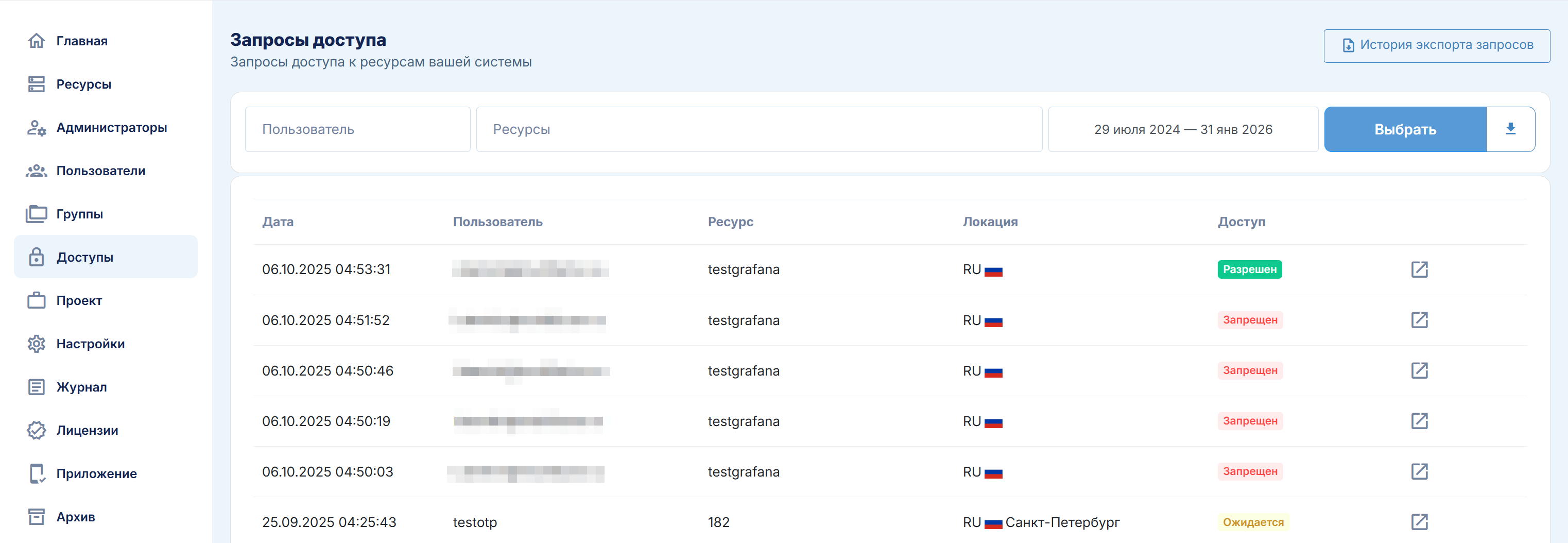 Данный раздел предназначен для предоставления администратору прозрачной истории всех запросов на настройку 2FA.
